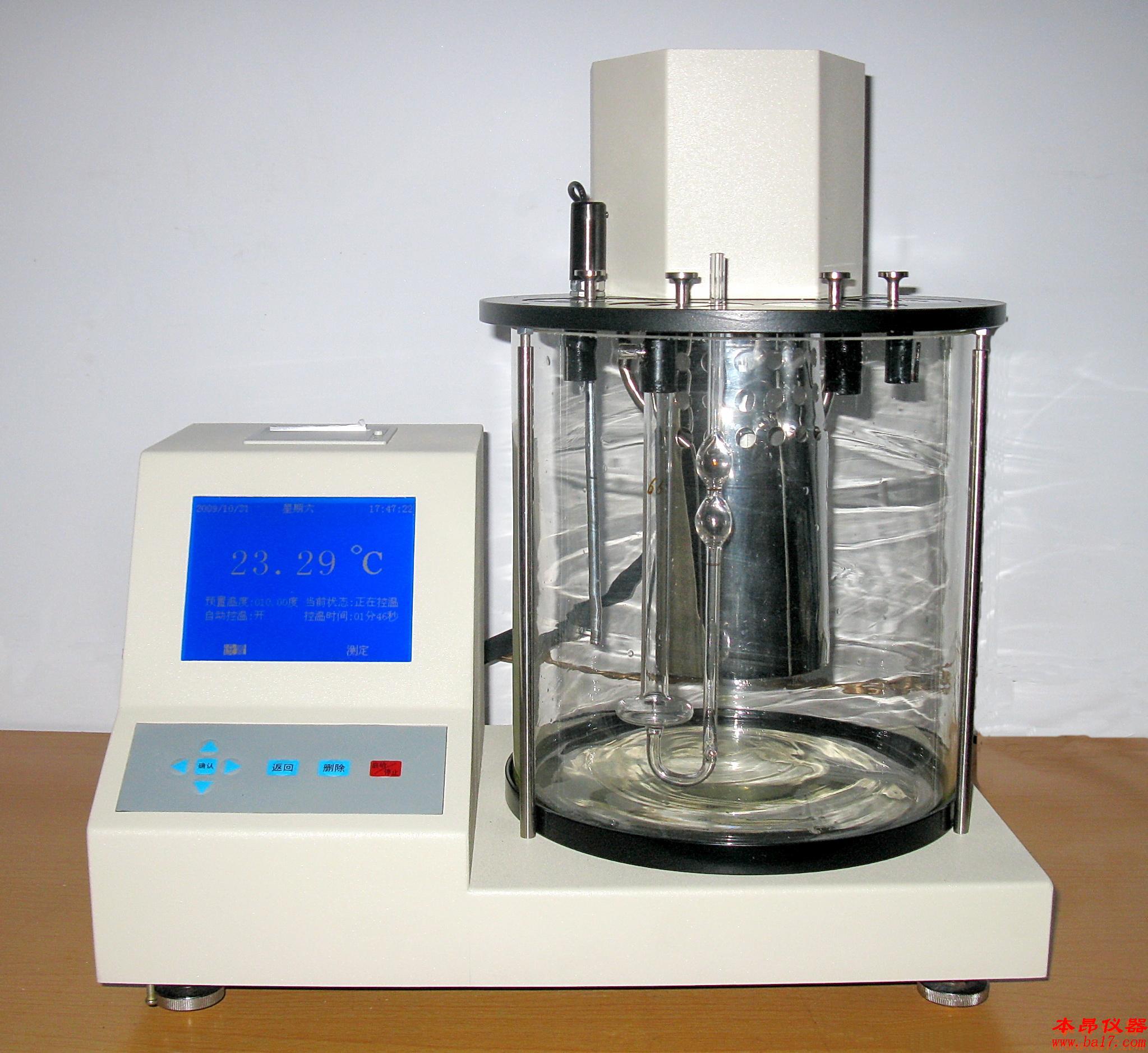 ???????AKV-265運(yùn)動(dòng)粘度測(cè)定儀符合GB/T265方法要求,溫度采用PID自動(dòng)控制技術(shù),控溫精度高;穩(wěn)定性好,微電腦液晶顯示,全中文菜單,人機(jī)對(duì)話直觀、方便。內(nèi)置國(guó)標(biāo)要求的數(shù)據(jù)處理計(jì)算程序和秒表,經(jīng)儀器自動(dòng)計(jì)算,用戶可直接得到*終測(cè)試結(jié)果??梢匀菁{四支粘度計(jì)進(jìn)行測(cè)試。