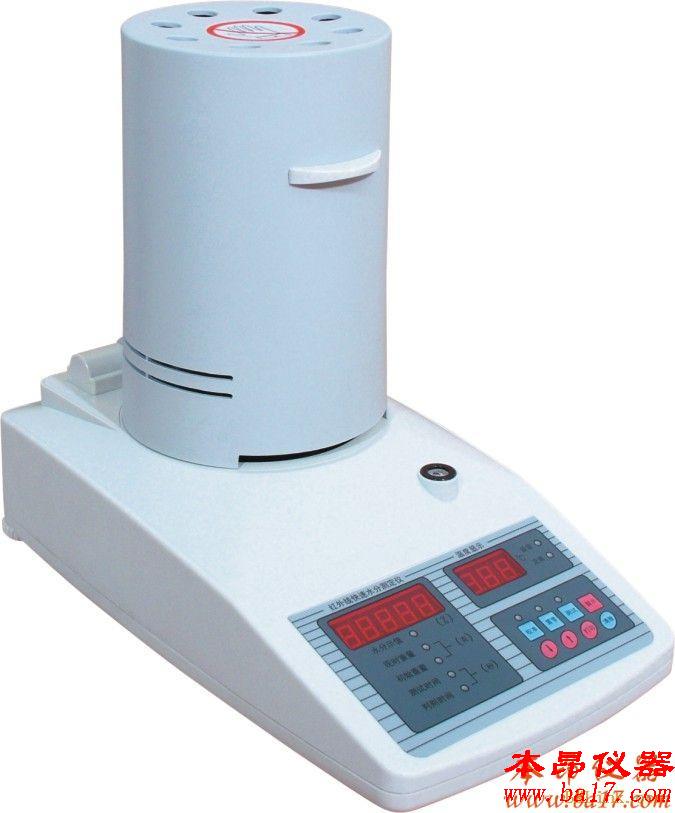SFY116高精度鹵素快速水分測定儀能在*短時間內達到*大加熱功率,操作簡單,測試準確,顯示部分采用紅色數(shù)碼管,示值清晰可見,分別可顯示水分值,樣品初值,終值,測定時間,溫度初值,*終值等數(shù)據(jù),并具有與計算機,打印機連接功能。其環(huán)狀的鹵素加熱器確保樣品在高溫測試過程中均勻受熱,使樣品表面不易受損,快速干燥,在干燥過程中,水分測試儀持續(xù)測量并即時顯示樣品丟失的水分含量%。一般的產(chǎn)品3-5分鐘就可以測試出結果。