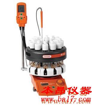 快速有效的加熱:使用Carousel 12加熱盤,可同時(shí)加熱12位反應(yīng),溫度范圍室溫到180℃(有時(shí)可達(dá)220℃)溫度精度:±0.5℃。溫度可通過加熱盤直接控制或者通過額外的溫度控制器提供更精確的溫度控制,溫度探針可插入反應(yīng)模塊或者通過反應(yīng)管的密封墊插入反應(yīng)溶液中來控制反應(yīng)模塊和反應(yīng)溶液的溫度。